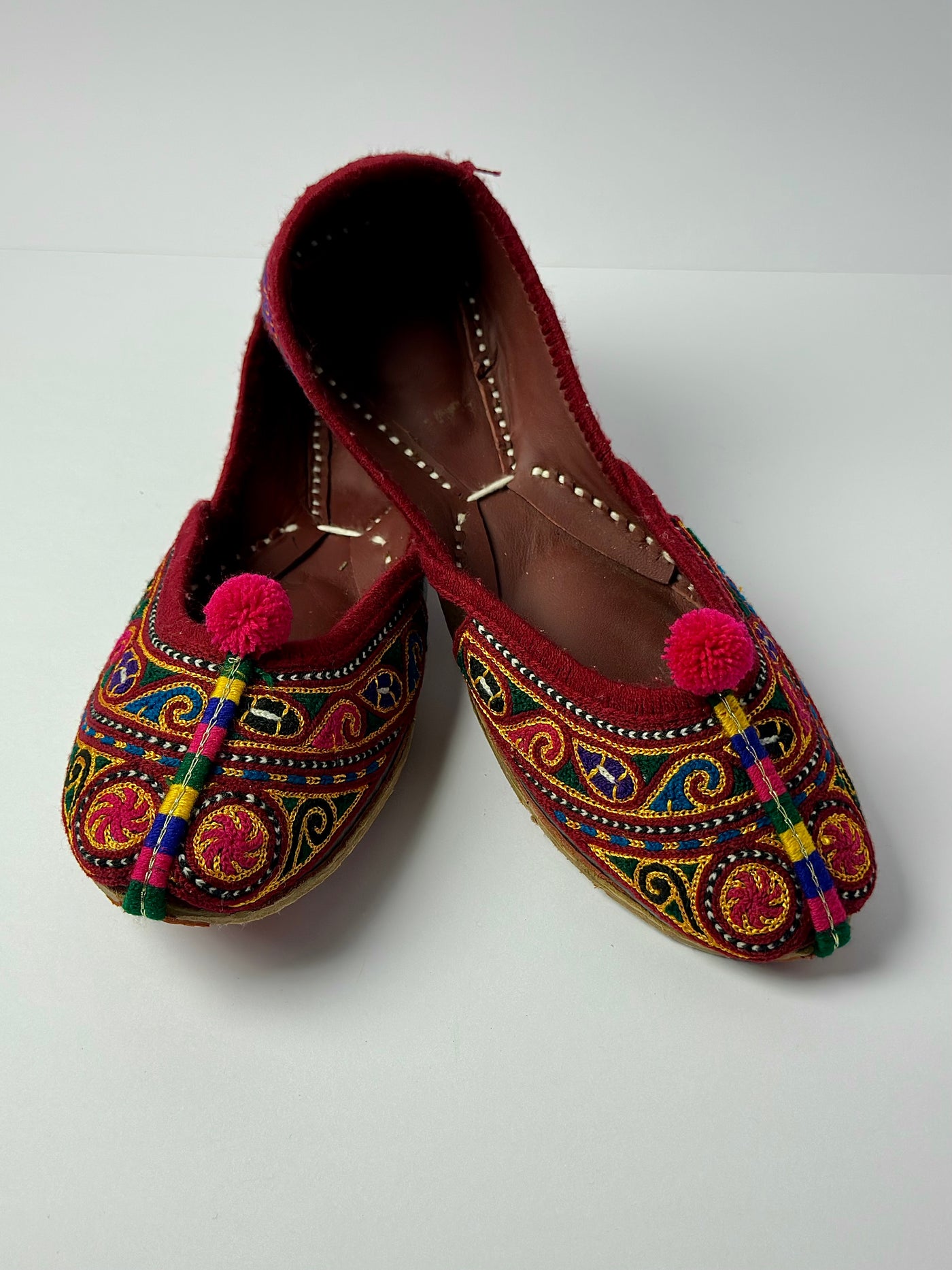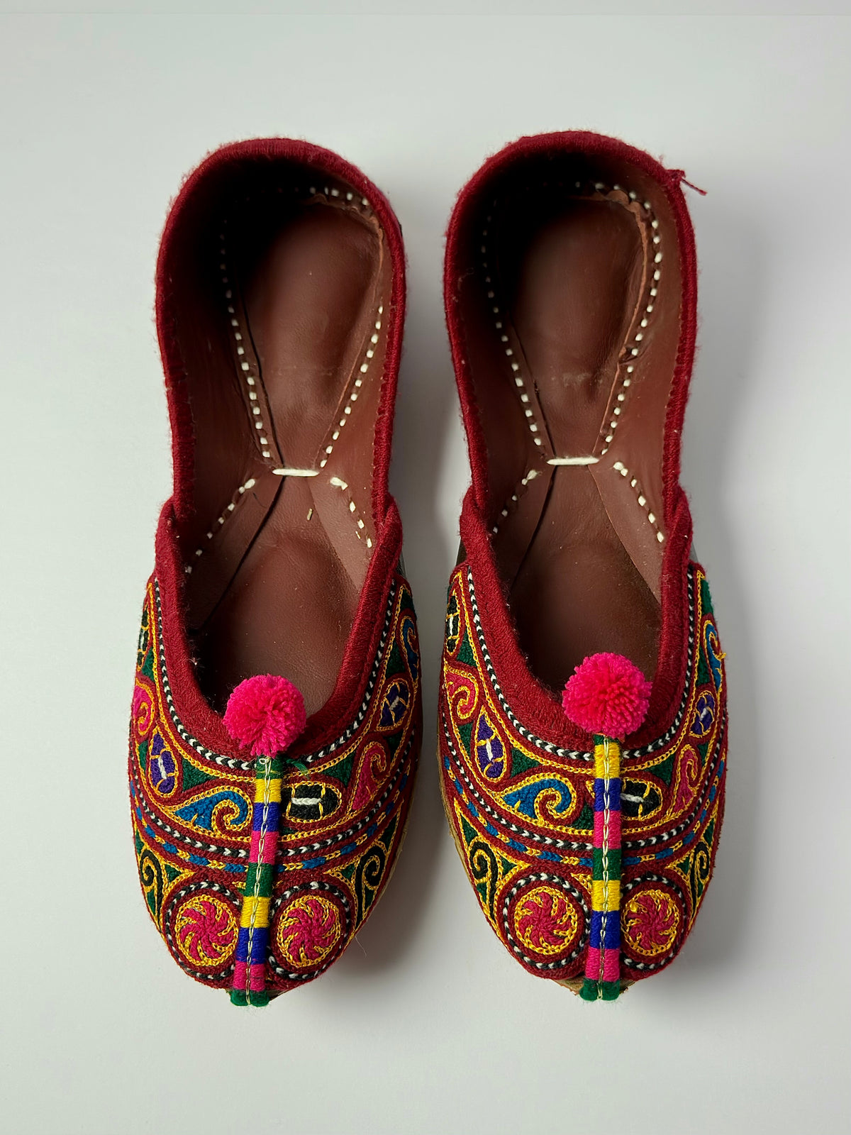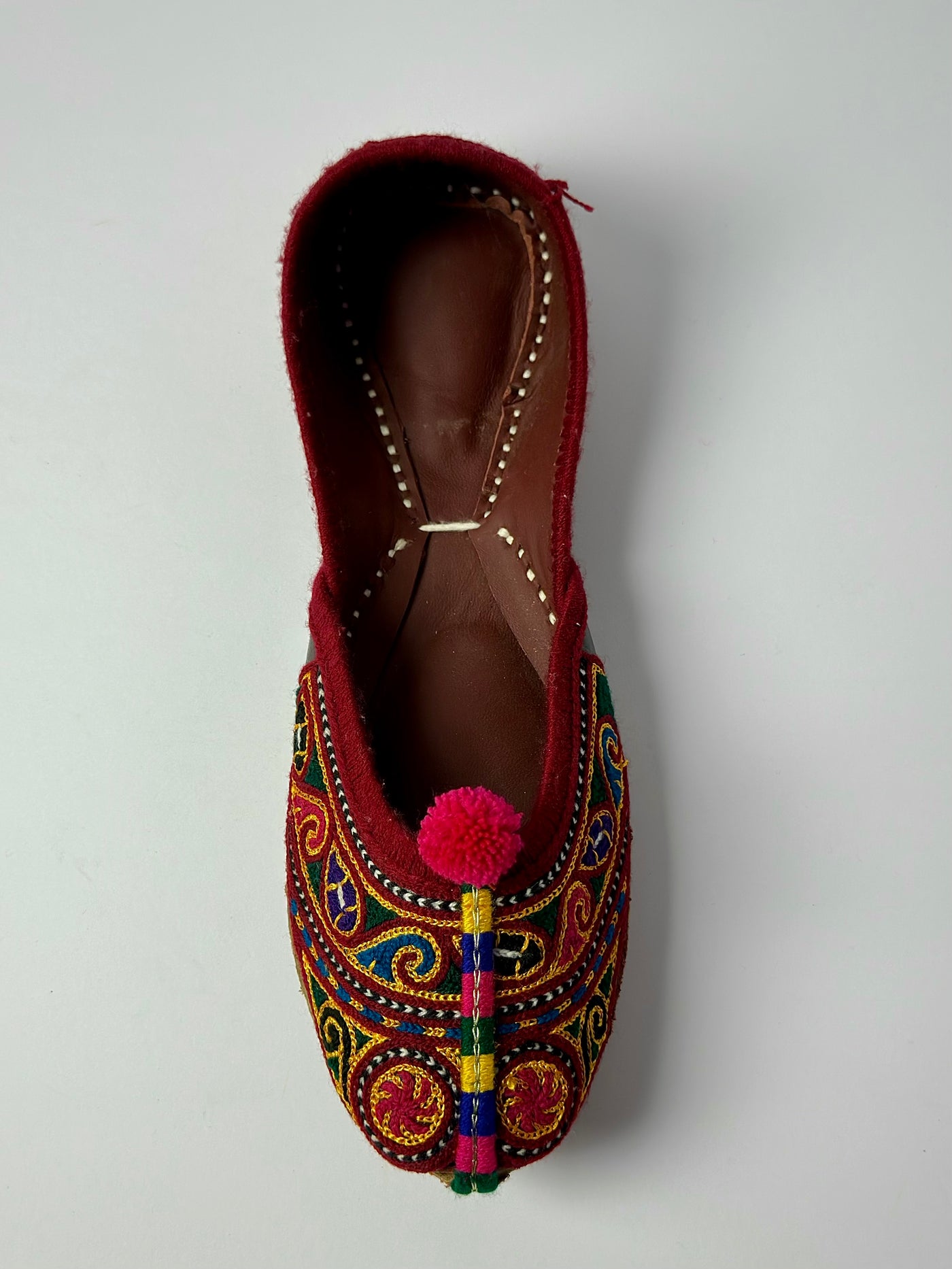 The intricate multicolor design adds a lively charm to any outfit, while the soft lining and durable sole ensure comfort for long gatherings. Ideal for those who love bold yet timeless traditional style.