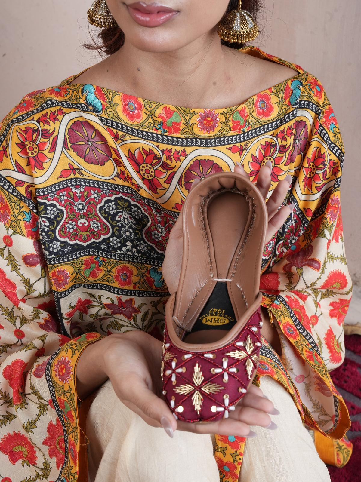 From "Mohtasham" Col-2 | Eid '25 | Vol-1 Embrace tradition with a royal touch! 👑 Gulnaz – where deep crimson meets intricate gold embroidery, creating a timeless masterpiece for your feet. Perfect for festive glam and wedding season!