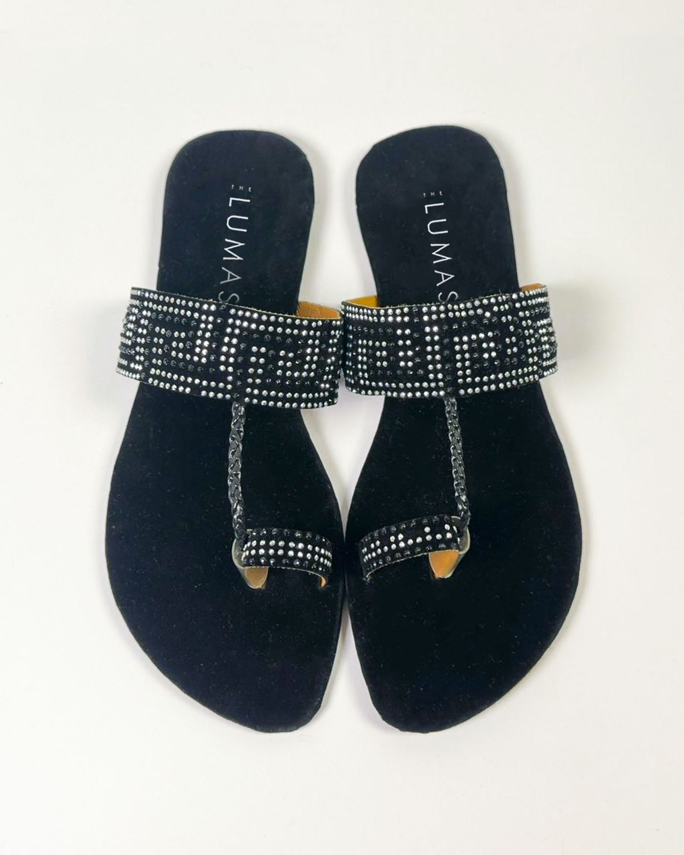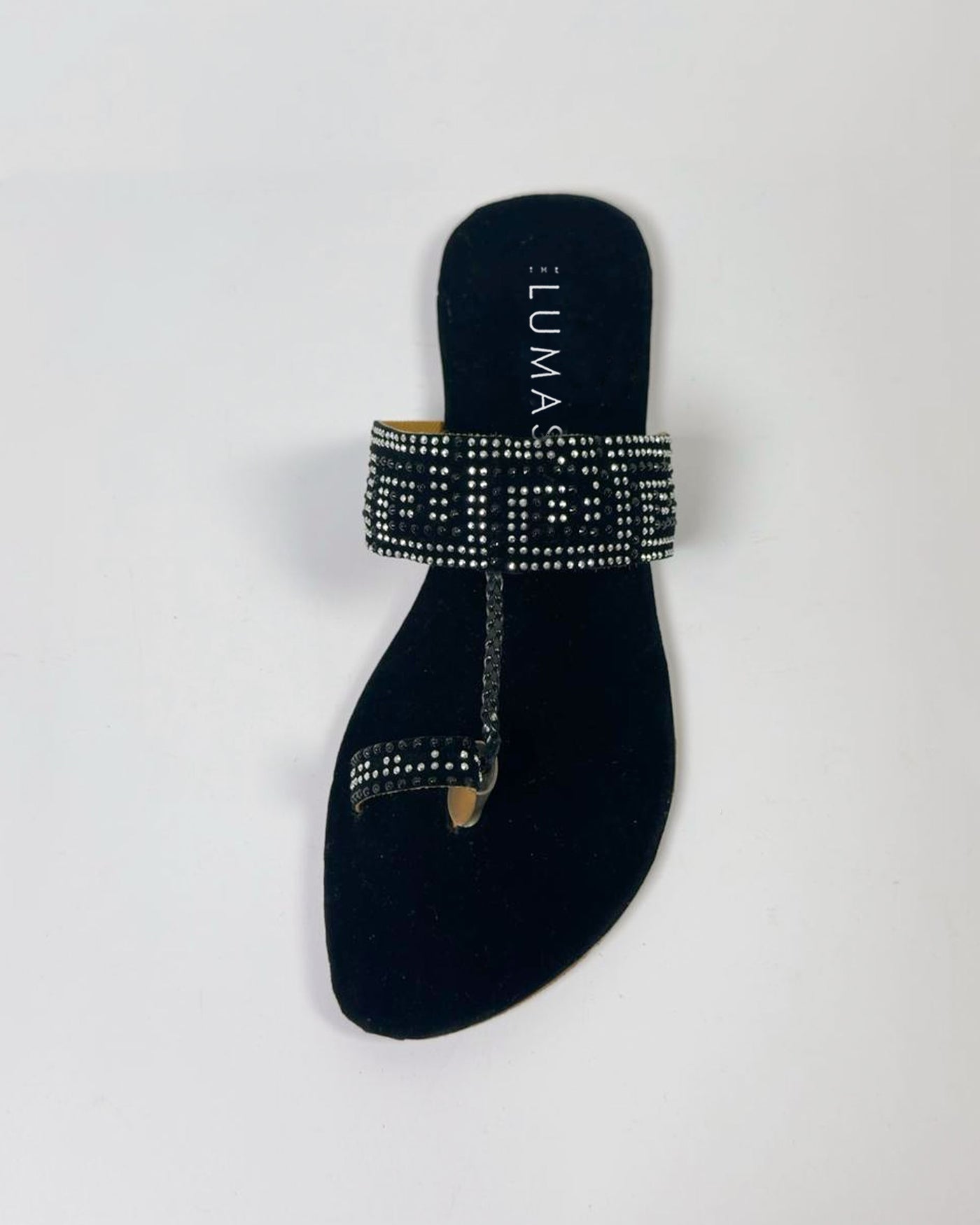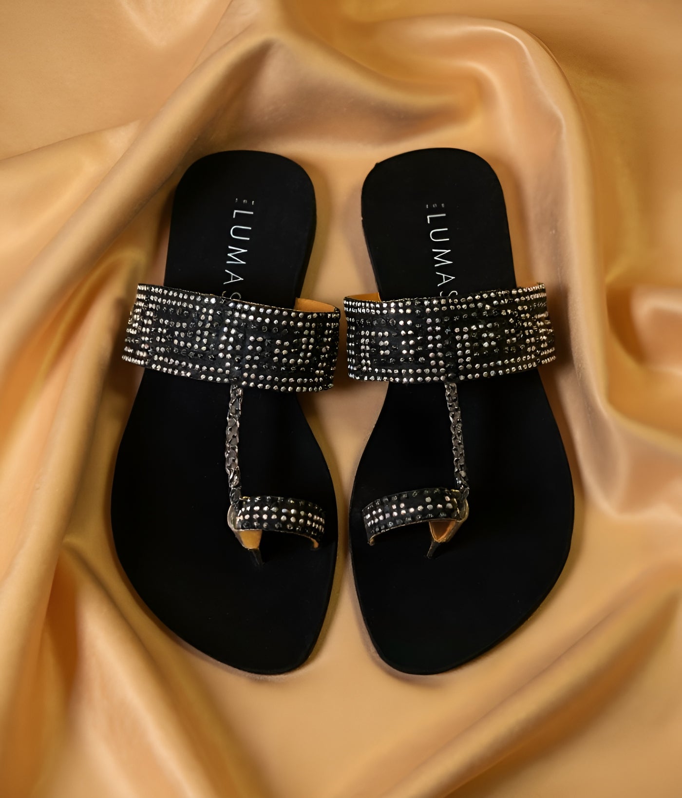 Handcrafted in deep noir suede, each stud catches the light like a secret toast to elegance.